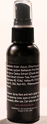 Island kisses is the first sunless solution that is formulated using women's hormones as a key focus. The winning combination of key ingredients that gives island kisses this unique approach are: goji berry, Japanese green tea and chaste berry. Goji berry is the next fountain of youth. Goji berries are truly a super fruit, they are packed with nutrients that promote good health and well-being and when applied to the skin, their extract helps protect your skin from UV damage through the power of antioxidants. Japanese green tea, fights free radicals, contains a cocktail of potent antioxidants called catechism, which help fight damage caused by free radicals. Japanese green tea, neutralizes the UV light, protects against sunburn, rejuvenates skin cells, fights inflammation, improves psoriasis and dandruff conditions, soothe acne and lighten the skin. Chaste berry, by helping to stabilize hormone levels, chaste berry will also help to keep skin clear. These natural ingredients will make your skin feel even softer than before the application. Island kisses sunless solution can be paired with UV tanning to give you that complete transformation. This noncomedogenic product is designed to not clog pores and thus, decrease the likelihood of trapping bacteria within the pores, which lead to acne. Island kisses is great for sensitive skin, gluten free and 95% natural. When it comes to the perfect kiss, island kisses sunless airbrush solution is right up there with prince charming delicate and sweet.Feature