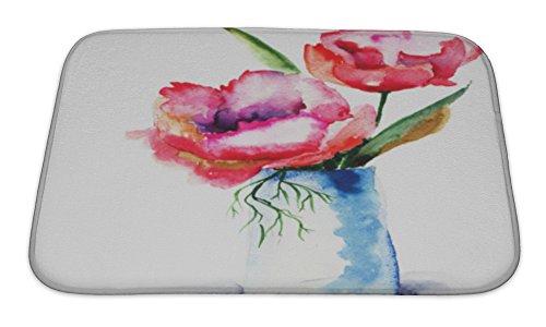 Gear New No Slip Microfiber Memory Foam Red Flowers Bath Rug Mat, 24" X 17"
