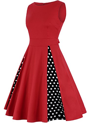 OTEN Women's Floral Print Wedding Party Prom Cocktail Vintage Dresses 1950s (Medium, Red & Polka Dots)