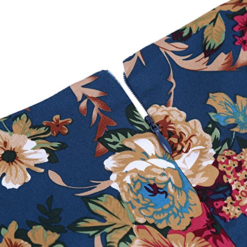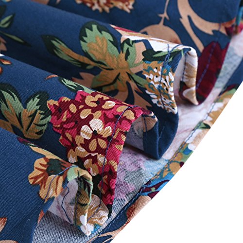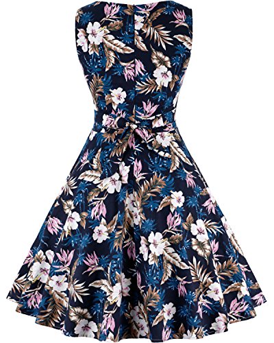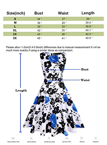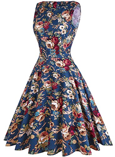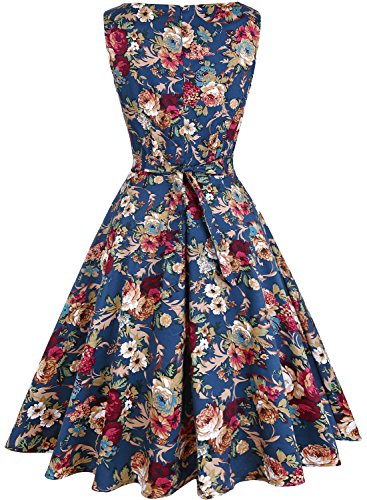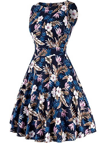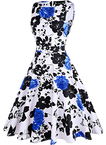 OTEN Women's Vintage Tea Dress Sleeveless Floral 1950s Cocktail Dressing, Medium, Blue+Floral