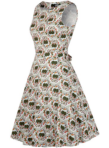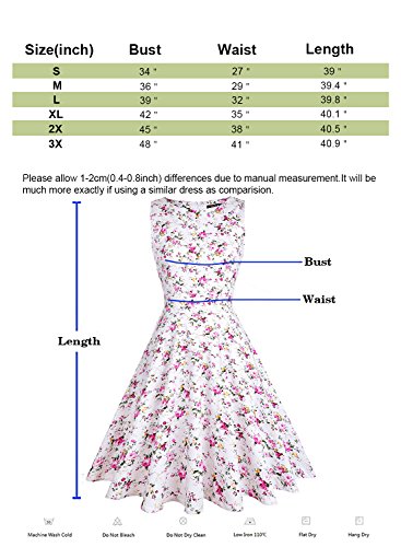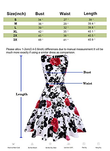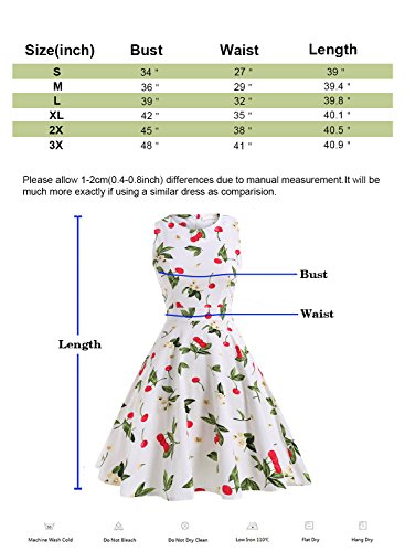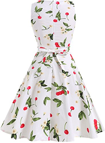 OTEN Women's Vintage Tea Dress Sleeveless Floral 1950s Cocktail Dressing, Large, White+Cherry