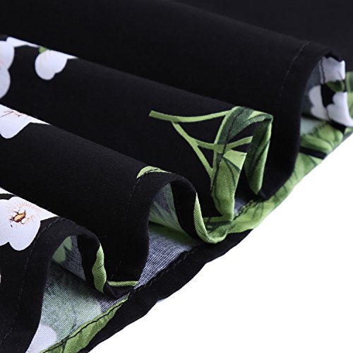 OTEN Women's Vintage Tea Dress Sleeveless Floral 1950s Cocktail Dressing, Large, Black+Cherry