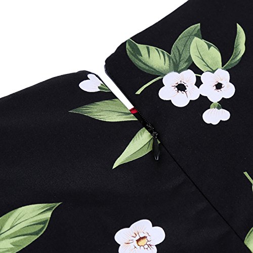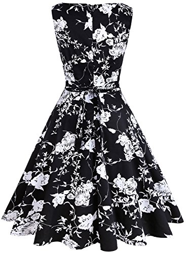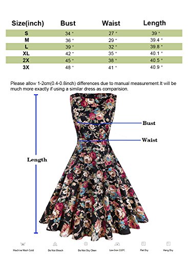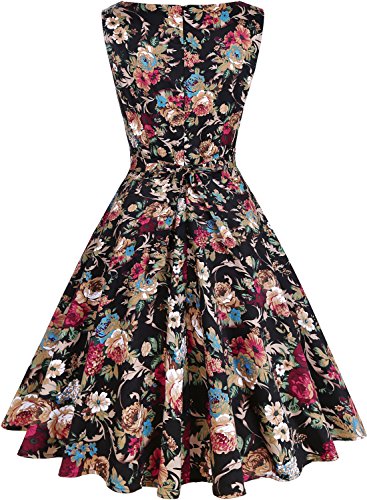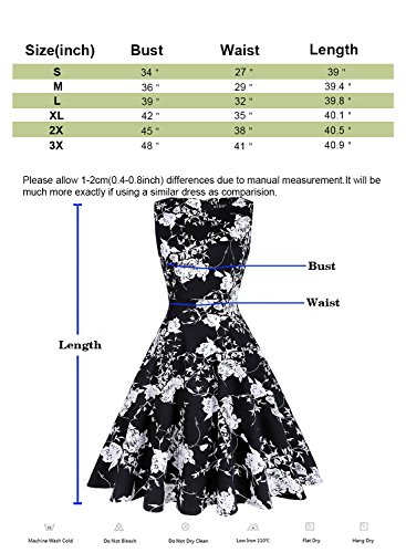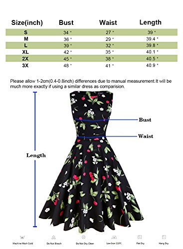 OTEN Women/'s Vintage Tea Dress Sleeveless Floral 1950s Cocktail Dress, Small, Black+Cherry