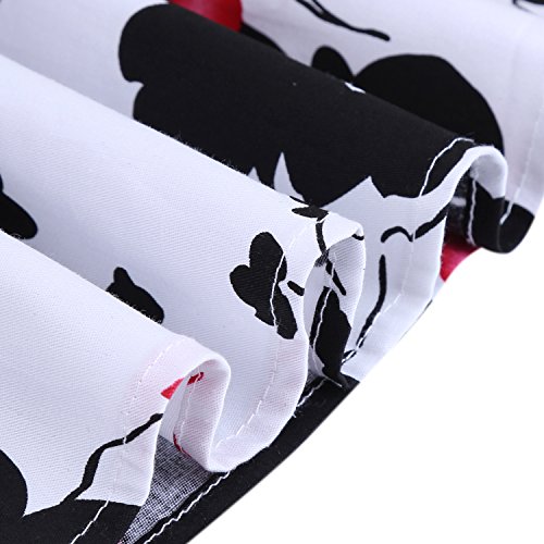 OTEN Women's Vintage Tea Dress Sleeveless Floral 1950s Cocktail Dressing, X-Large, White+Red Floral