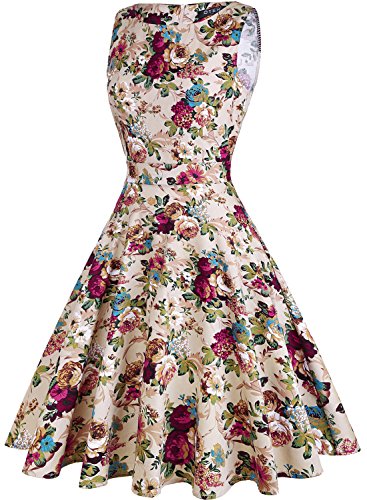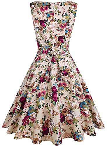 OTEN Women's Vintage Tea Dress Sleeveless Floral 1950s Cocktail Dressing, Medium, Khaki+Floral