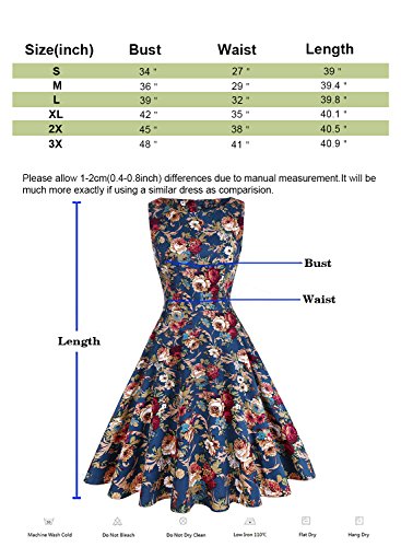 OTEN Women's Vintage Tea Dress Sleeveless Floral 1950s Cocktail Dressing, Small, Blue+Floral