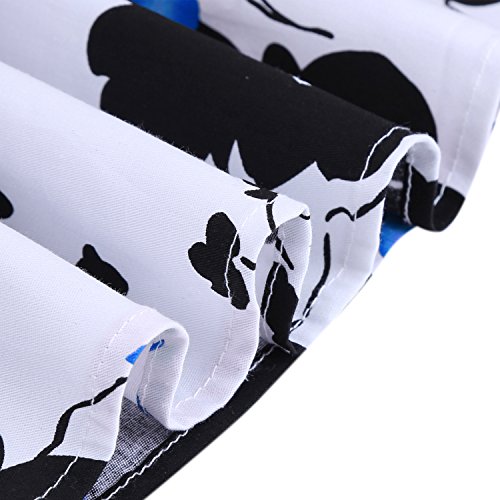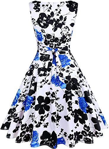 OTEN Women's Vintage Tea Dress Sleeveless Floral 1950s Cocktail Dressing, Medium, White+Blue Floral