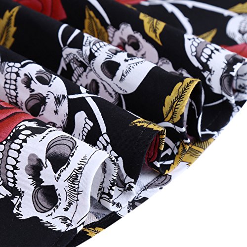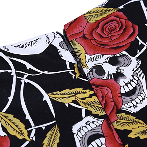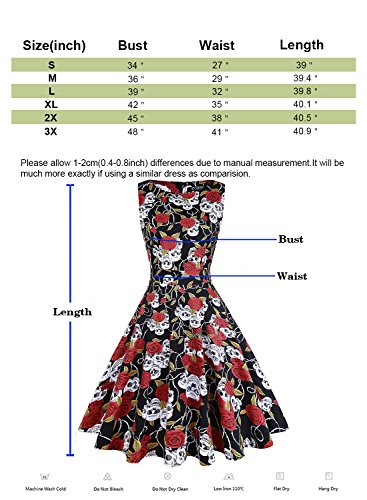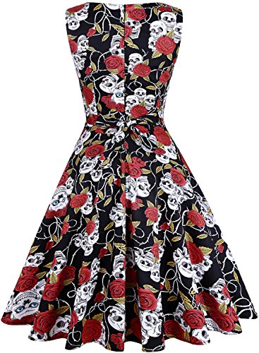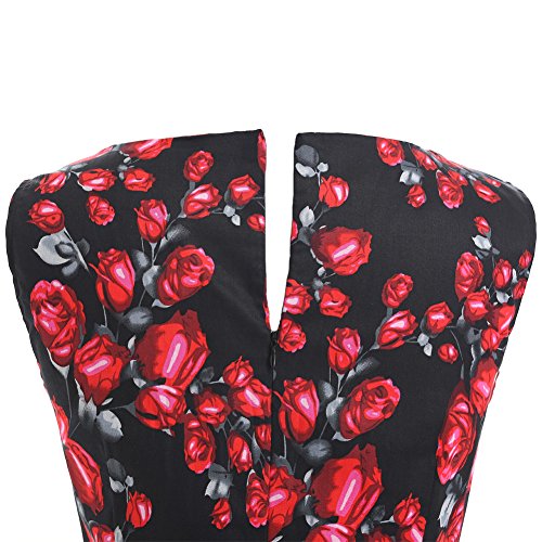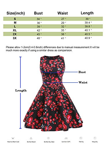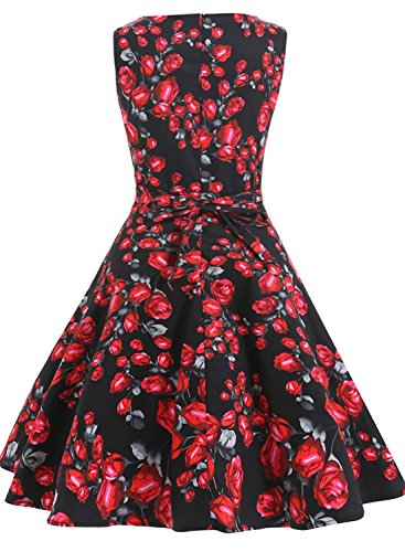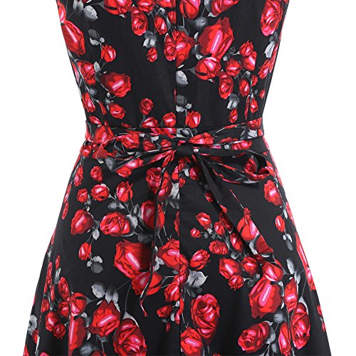 OTEN Women's Vintage Tea Dress Sleeveless Floral 1950s Cocktail Dressing, Large, Black+Red Rose