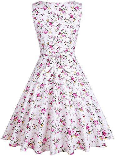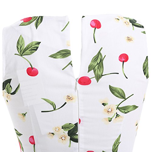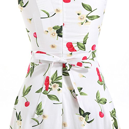 OTEN Women's Vintage Tea Dress Sleeveless Floral 1950s Cocktail Dressing, Medium, White+Cherry