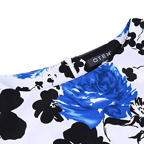OTEN Women's Vintage Tea Dress Sleeveless Floral 1950s Cocktail Dressing, Large, White+Blue Floral