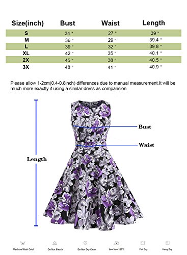 OTEN Women's Vintage Tea Dress Sleeveless Floral 1950s Cocktail Dressing, Large, Black+Purple Floral