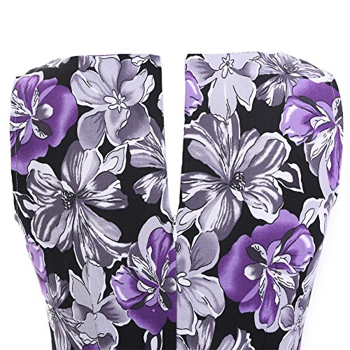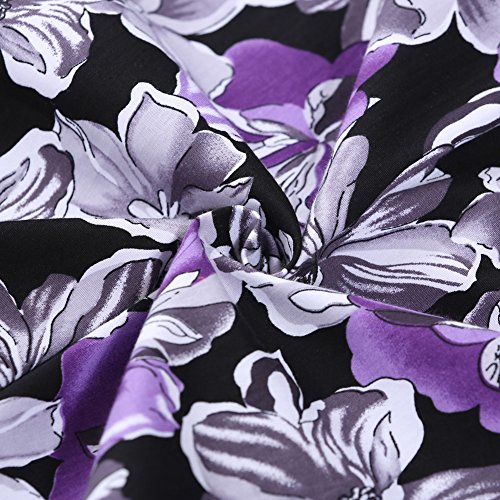 OTEN Women's Vintage Tea Dress Sleeveless Floral 1950s Cocktail Dressing, X-Large, Black+Purple Floral