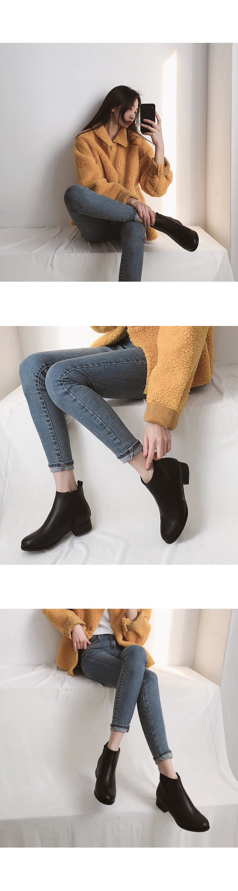 LAST 슬림한 라인의 라운드토 앵클부츠입니다. 플랫한 굽으로 편안하게 착화되는 2018 FW 뉴시즌 자체개발 제품입니다.