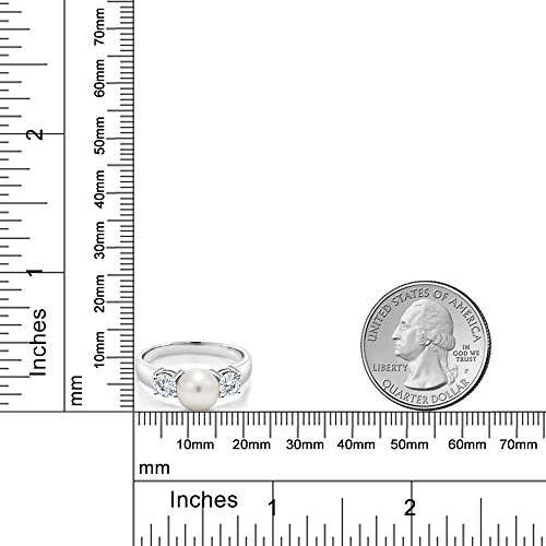 -. Title : 925 Sterling Silver Three-stone Cultured Freshwater Pearl and 0.58 ct Created Moissanite Ring (Available in size 5, 6, 7, 8, 9)