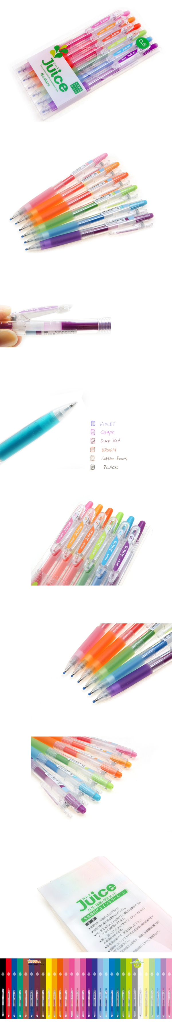 Juice는 간단하면서도 강한 펜이다. 36가지의 다양한 컬러에 안료 잉크로 오래도록 변색이 잘 되지 않고, 방수 또한 가능하다.