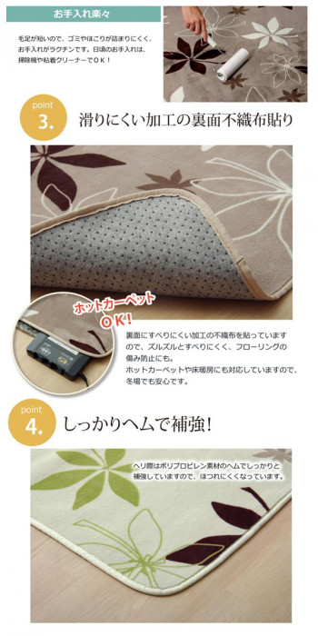 生地に抗菌・防臭加工を施したラグカーペットです。しっとりとして非常に柔らかいフランネル生地を使用しています。春夏はラグとして、冬場はホットカーペットカバーとして、オールシーズンご使用いただけます。 |