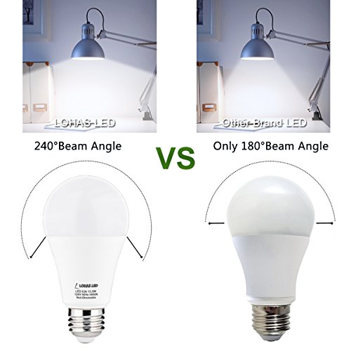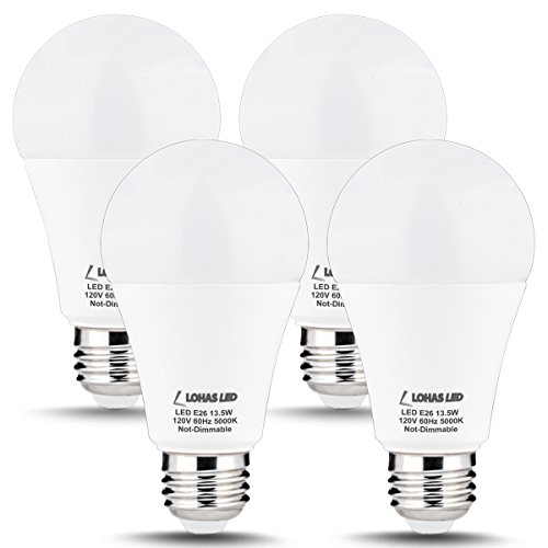 LOHAS 100 Watt LED Light Bulbs Equivalent, A19 LED Lamp 13.5W, Daylight 5000k, E26 Edison Base Bulb, 1300LM, 240 Degree Beam Angle LED Flood Lights, Non-Dimmable for LED kitchen Home Lighting(4 Pack)
