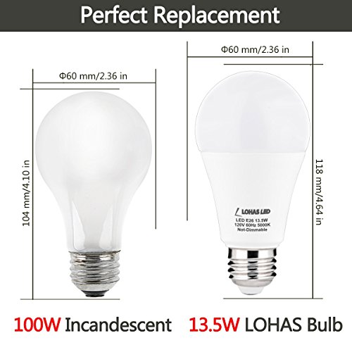 - LESS POWER-HUNGRY--Save electricity bill compared to traditional light bulbs. Replace a 100w traditional light bulb by a A19 LED 13.5W LED.