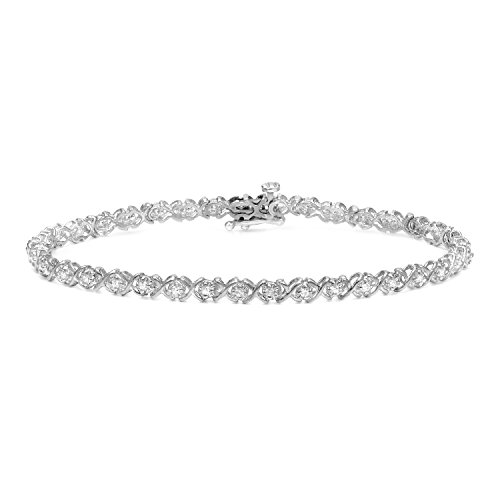 -. Title : 14k White Gold Round-cut Diamond Tennis Link Bracelet (1 1/4 cttw)