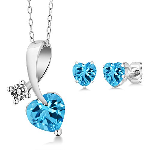 -. Binding : Jewelry -. Brand : Gem Stone King -. Color : Swiss Blue and White -. Department : womens -. Feature : SIMPLY SOPHISTICATED - This delicate pendant will immediately put you in the spot light. Crafted with high quality stones this pendant is the perfect accessory for any ensemble on any occasion. Our complimentary 18" Chain makes sure that this piece is stunning and all around flattering. / UNIQUELY DESIGNED- With simplicity in mind this pendant is the perfect item for gift givers who want to show they care. Perfect for birthdays, weddings, mother day or just those moments when you want to get something for that "Someone Special". / INCLUDES- Complimentary 18" Chain so that its ready for gift giving upon arrival / GORGEOUS- and Sparkly these earrings are perfect for any outfit. Crafted with 925 Sterling Silver these earrings are the perfect gift for any occasion and make perfect stocking stuffers for the holidays. These earrings are perfect for significant moments. / UNIQUE- The design of these earrings will ensure that you stand out effortlessly. Gift these beautiful earrings to yourself or someone you love. Made in the USA Gem Stone King products are always made with the highest quality elements and standards. -. Model : MGZ-0308-HS-T-SWBL-T-SWBL-DI-W-WG14K -. MPN : MGZ-0308-HS-T-SWBL-T-SWBL-DI-W-WG14K -. NumberOfItems : 1 -. PackageQuantity : 1 -. PartNumber : MGZ-0308-HS-T-SWBL-T-SWBL-DI-W-WG14K -. ProductGroup : Jewelry -. ProductTypeName : FINENECKLACEBRACELETANKLET -. Title : 2.72 Ct Heart Shape Swiss Blue Topaz and Diamond 14K White Gold Pendant Earrings Set