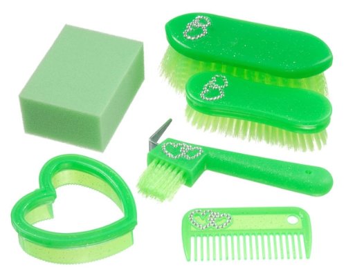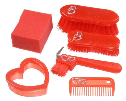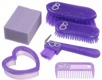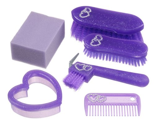 Product DescriptionIncludes body brush, face brush, curry, hoof pick, comb and sponge. All with crystal heart accents. JTS55760640