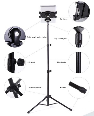 高さ調節や折りたたみが可能な三脚式のiPad・タブレット用スタンドです。