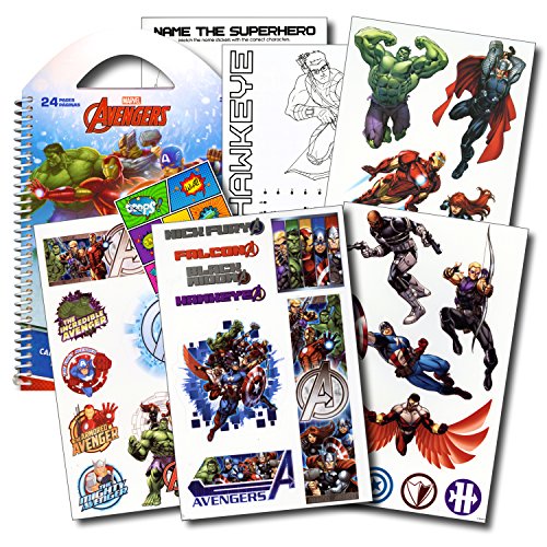 -. Binding : Toy -. Brand : Disney Studios -. Department : boys -. EAN : 0763769354493 -. Edition : Marvel Avengers -. Feature : Avengers sticker travel activity book with tons of sticker fun with favorite Avengers characters! / 12 sticker pages with specialty dot art coloring stickers, 2 play scenes and 12 sticker activity pages. / Spiral bound activity book with built in carrying handle. Sticker book is perfect for any car ride, restaurant or family adventure! / Includes large 3x3 inch "PopArt Super Hero" specialty sticker by Green with Whimsy. Separately licensed product. / Perfect way to keep little ones entertained while on the go! Sure to be a hit with any little Avengers fan! -. Genre : childrens-decorative-stickers -. IsAdultProduct : 0 -. Label : Disney Studios -. Manufacturer : Disney Studios -. MPN : 43207-54250 -. PackageQuantity : 1 -. PartNumber : 43207-54250 -. ProductGroup : Toy -. ProductTypeName : TOYS_AND_GAMES -. Publisher : Disney Studios -. Studio : Disney Studios -. Title : Marvel Avengers Stickers Travel Activity Set with Stickers, Activities, and Large Specialty Sticker -. UPC : 763769354493