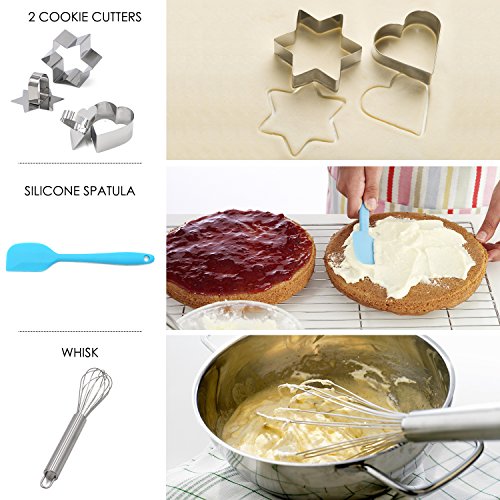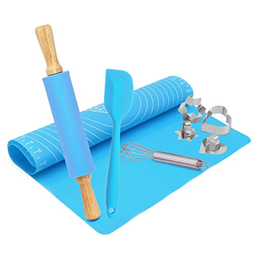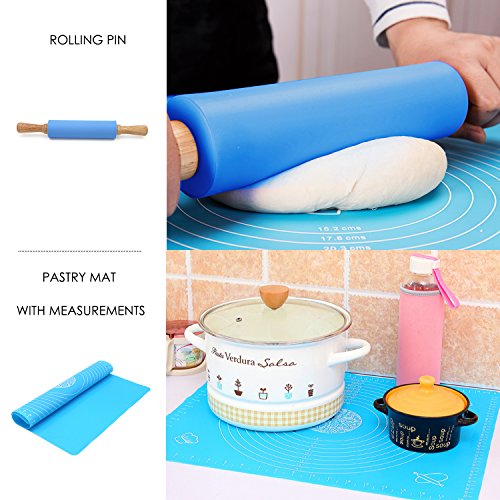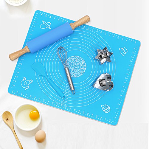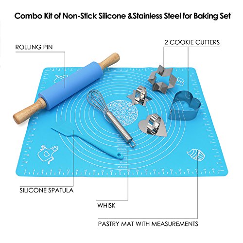 - SPECIAL EXTRAS INCLUDED: This combo set also comes with a 100% food-grade silicone pastry mat and two handy cookie cutters. The flexible, BPA-free kneading mat with measurements is high-heat resistant, lays flat on any surface, prevents dough from sticking, and keeps your counters clean. The star- and heart-shaped cookie cutters keep kids safe and create perfect cuts every time.