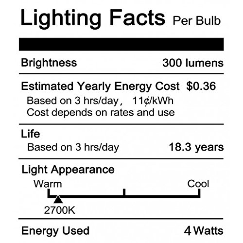Note: Dimmable: No Color temperature: 2800K-3000K Lumen: 320lm Voltage: AC/DC 12V Watt: 4W CRI: >80 Beam Angle: 60° Light total length: 52mm (pin length included) Light body length: 47mm (pin length excluded) LED bulb VS Incandescent bulb (8hours / day over 1 year): Power Consumption Comparison Electric consumption of LED 4W bulb: 4W* 8Hrs/d *365=11.68Kwh Electric consumption of 50W Incandescent bulb: 50W* 8Hrs/d* 365=146Kwh Electric consumption ratio: 1250% --Life-span comparison: LED: approximately 20,000Hrs Incandescent bulb: approximately 1500Hrs --Comparison result: 1 LED bulb = 12.5 Incandescent bulb Applications: This low voltage LED light bulb is widely used as up/down/accent lighting source to serve both residential and commerical lighting purposes. This products is best and perfect for replacement of conventional MR16 lamp, widely use in shopping mall, hotels, restaurant, cafes, office, museums, home indoor lighting, specialty stores, jewelry store, etc. Kindly reminder: When working with outdoor landscape light fixture, please make sure to protect this light bulb from water. Product not for use in totally enclosed luminaires. In order for an LED light to function correctly, they must be in a non-enclosed fixture to allow heat to dissipate from the heat sink. Otherwise, they can overheat and may fail early. Package Included: 10pcs LED MR16 warm white spotlightFeature