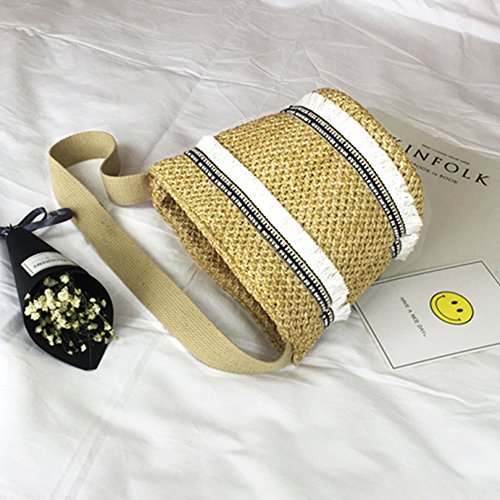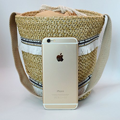 Goodbag Boutique Women Drawstring Bucket Bag Large Handwowen Shoulder Bag with Tassel Weave Straw Bag Purse Bags