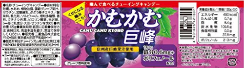 原材料:砂糖、水あめ、植物油脂、濃縮グレープ果汁、ゼラチン、加糖練乳、ぶどう種子エキス/酸味料、乳化剤、ソルビトール、増粘多糖類、光沢剤、香料、クチナシ色素、ピロリン酸鉄、光沢剤、(一部に乳成分・大豆・ゼラチンを含む)