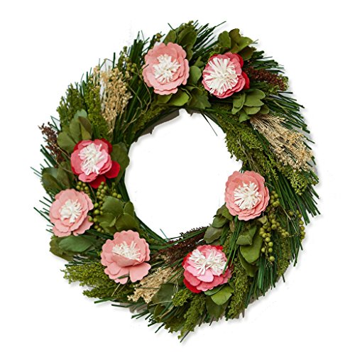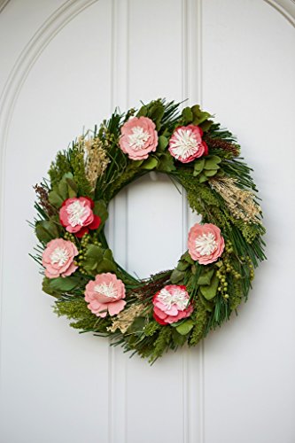 Scented Wreath with Pink Paper Flowers and Real Botanicals (18 Inches) for Front Door