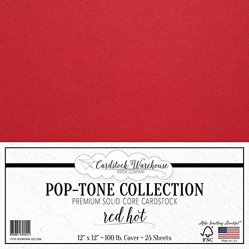 RED HOT RED Cardstock from Cardstock Warehouse - 12" x 12" - PREMIUM 100 LB. COVER - 25 Sheets