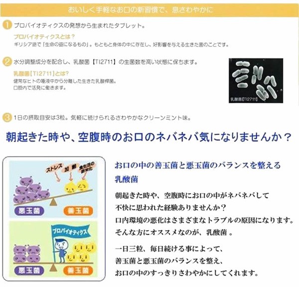 デキストリン、マルチトール、エリスリトール、乳酸菌末、ソルビトール、香料、ショ糖エステル、微粒ニ酸化ケイ素 |