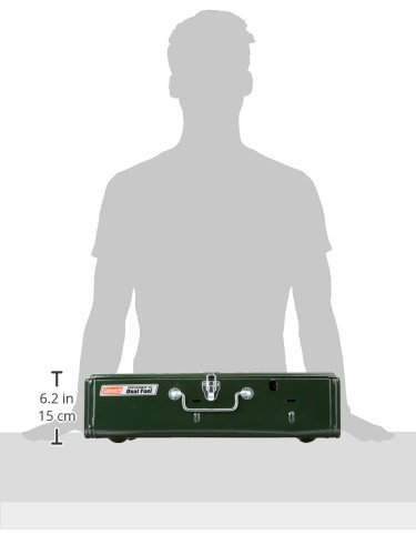 - Lasts up to 2.3 hours with both burners on high on 3.5 pints of Coleman® Liquid Fuel or unleaded gasoline (both sold separately)