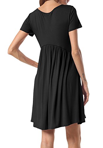 LAINAB Womens Summer Short Sleeve Scoop Neck Pleated Loose Swing Casual Dress.