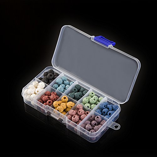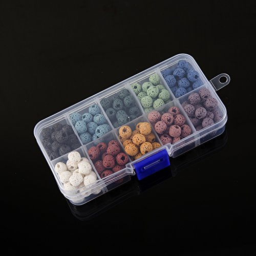 - Lava stone beads set: 10 color lava rock beads, including black, light blue, dark blue, green, light green, white, yellow, pink, red, purple ; 20 pieces each color, 200 pieces in total