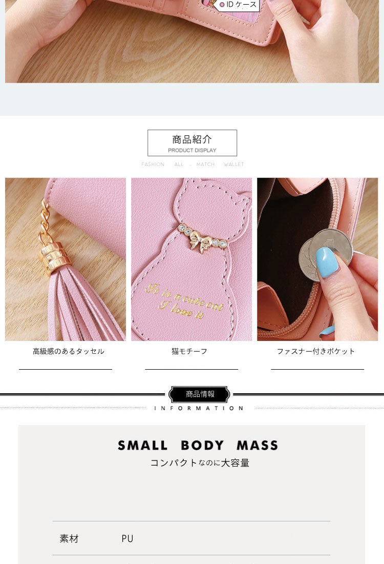 | 開閉 | お札入れ×1、カード入れ×5、ID入れ×1、ファスナーポケット×1 |