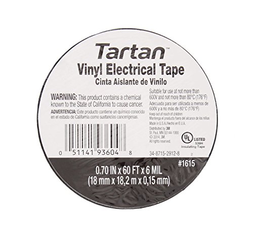 3M Tartan 1710 Vinyl Economical General Purpose Insulating Electrical Tape, 176 Degree F, 60' Length x 3/4" Width, Black (Pack of 10)
