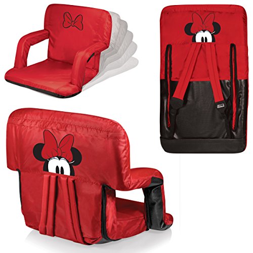 Studio : Picnic Time (Sports-non license) Publisher : Picnic Time (Sports-non license) Binding : Sports Product Description Perfect for camping, outdoor concerts, sporting events, days at the beach or the game room, this Disney Classics Minnie Mouse Ventura portable recliner by Picnic Time features a durable polyester-covered padded cushion mounted on a sturdy steel frame. Picnic Time designed the Ventura seat with comfort in mind, and the high-density internal PU foam offers the perfect firmness to prevent aches in your back and buns. The Ventura seat adjusts simply by folding the top and the bottom toward one another into six assorted positions for custom relaxation. The integrated armrests automatically fold as you change the recliner positioning, and if you prefer a wider seat over armrests, they can be inverted to increase the width of the seat to 20 inches. The adjustable backpack-style shoulder straps allow for easy transport on your outing, and a small zippered pocket in the back will house your keys, cell phone and other small incidentals. The Ventura seat folds flat for easy storage and transport and Minnie Mouse artwork graces the back of the chair, making it a great gift for the Disney enthusiast. Backed by the Picnic Time Family of Brands BUILT TO LAST Lifetime Guarantee. 0