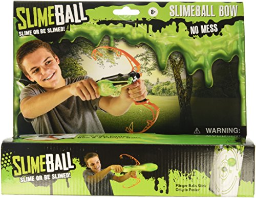 Launch slimeballs like never before! the Slimeball bow launches Flinger balls that will Splat onto the target poster! the bow features a built-in recoil launch mechanism, contoured grip and a unique, easy to use aiming system. Just pull back the Flinger ball and launch away! the specially designed view finder helps line up shots for accuracy. Flinger balls are soft, safe and slimy but leave no marks on any surface. Line up your shot and let the slimeballs fly! the Flinger balls stick only to the poster. The Slimeball line brings you tons of active slime fun with no mess. Includes 18” target poster, bow and 2 Flinger balls. Ages 8+.
