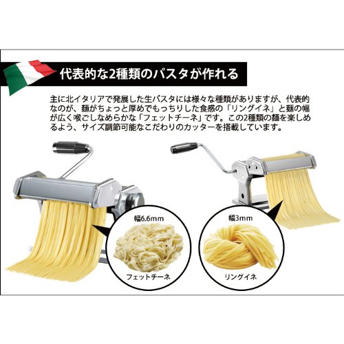 조금 후보며 즐기 탄력 있고 쫀득한 느낌 한 먹을 때의 느낌의「링 벼」평탄하고 와이드,목구멍 고가 매끄러운「펫 찌 네」(지방에 의해서는「《다리아텟레》」다마다 불리 있는다)대표적인 2종류의 파스타가 이것 1대로 만들 수 있는 파스타의 두께는 7단계에 조절 가능하고,굵음도 3mm과 6.6mm의 2종류에서 선택할 수 있는 분해 할 수 있기 때문에 손질 편안하게&수납 편안하게
