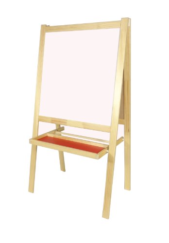 This Children's Easel is simple to use sets up in seconds. Use recommended for 3 and up. This is a great addition to any classroom or bedroom, Double side white board and chalk board allows for back to back use. Easilyy erase white board or chalk board without water Product dimensions Length: 17 " Width: 24 " Height: 46 "