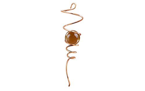 Qwirly Gazing Ball Spiral Tail Cyclone Wind Spinner Optical Illusion with Swivel Hook and Rubber Grip Accessories Included, 11" Copper Metal Solid Glass Sphere. Many Colors (Gold/Amber)