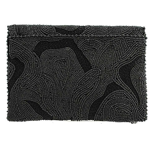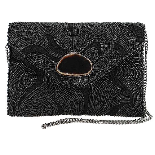 Mary Frances Earth Energy Black Beaded Embroidered Crossbody Clutch