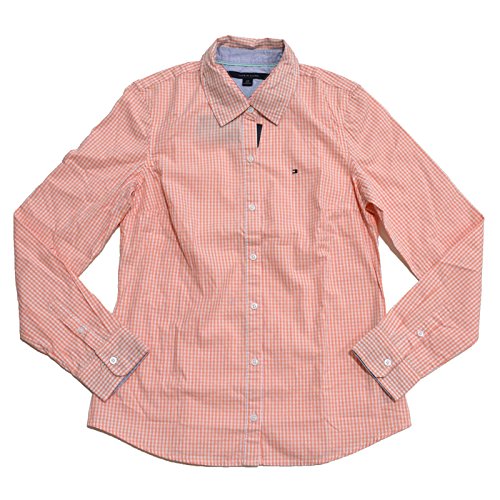 Tommy Hilfiger Women's Gingham L/S Oxford Shirt, Paarl Amber, Small