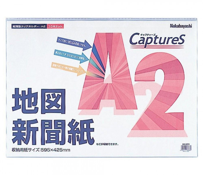 「とっておきの記事をそのまま残しておきたい」新聞紙がそのまま入る大判ホルダーです。その他、地図・A2サイズのポスターなども長期間キレイに収納・閲覧できます。 |