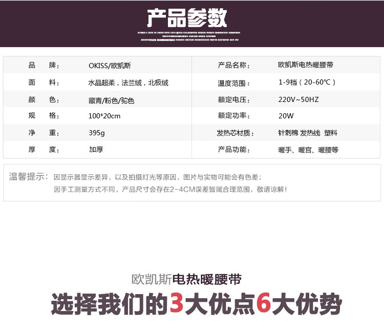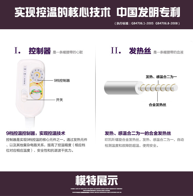 发热芯规格:40*12cm 腰带规格:100*20cm 温控范围:20-60℃
