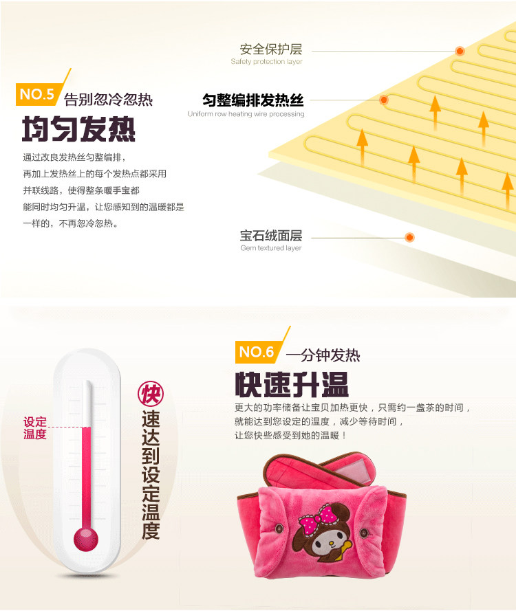 5、 请勿在本产品上覆盖被盖等厚重保温物(不可放在被窝内使用)