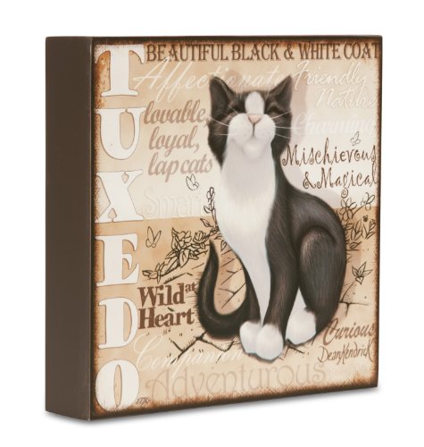 Pavilion Gift Company 46046 Pedigree Pals "Black and White Tuxedo Cat" Self Standing Wall Art Plaque, 8 by 8-Inch